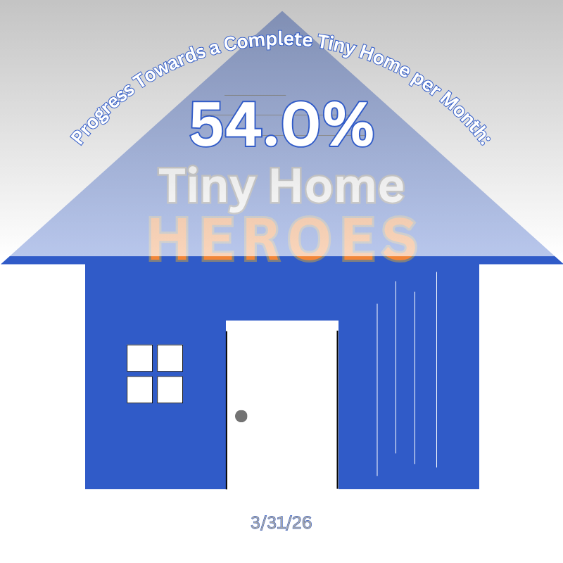 Our current goal is to fund one home per month through our Tiny Home Heroes program and as of March, 2026 we’re more than halfway to that goal! Will you help? $10, $25, $50, or more each month — all of it matters to help move our homeless neighbors off the streets and into spaces that are warm, safe, and dry. If you’re able, just $187.50 each month for 24 months sponsors a complete tiny home!