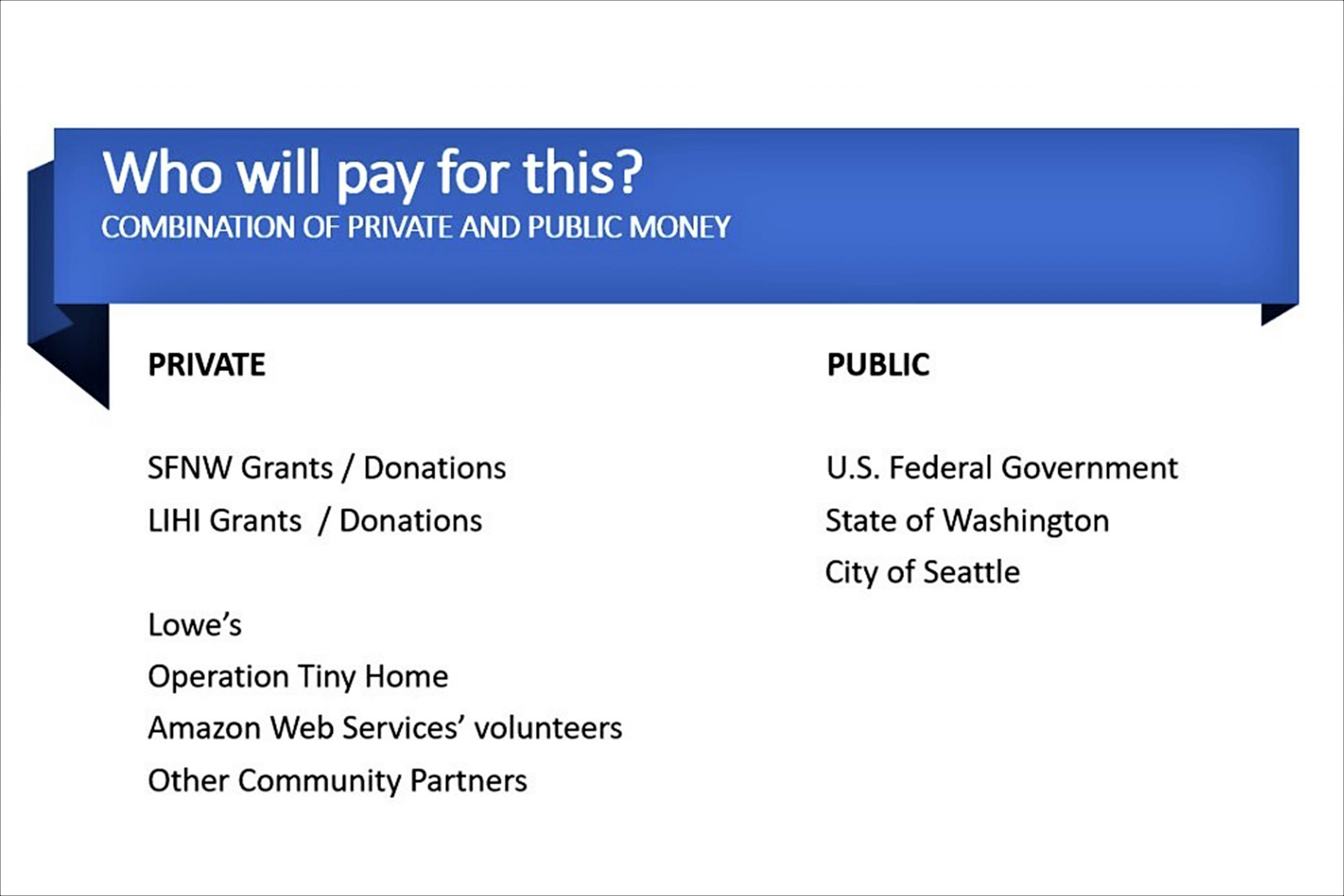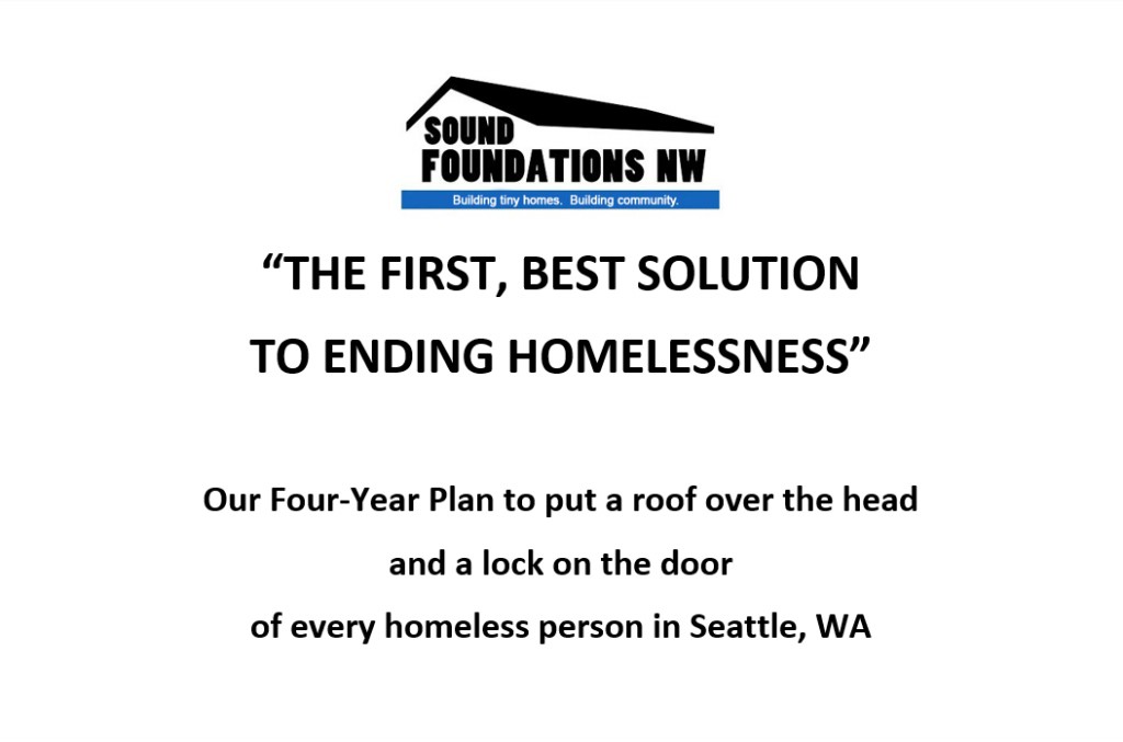 - Sound Foundations NW will employ and pay, through a separate budget submitted by the Seattle Conservation Corps, homeless and formerly homeless individuals to literally build their own tiny homes. If they are already in a tiny home village, this would be their way to pay it forward.
