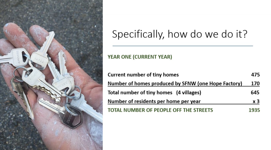 - “Homelessness is not about a lack of a home. Homelessness is about a lack of COMMUNITY.” Tiny home villages provide the community to make the “head and heart” transformations possible. https://soundfoundationsnw.org/the-case-for-tiny-home-villages