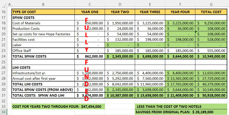 [18F]: Year Four Cost of Materials changed from $4,800,000 to $3,225,000 because we are using three Hope Factories instead of four Hope Factories.