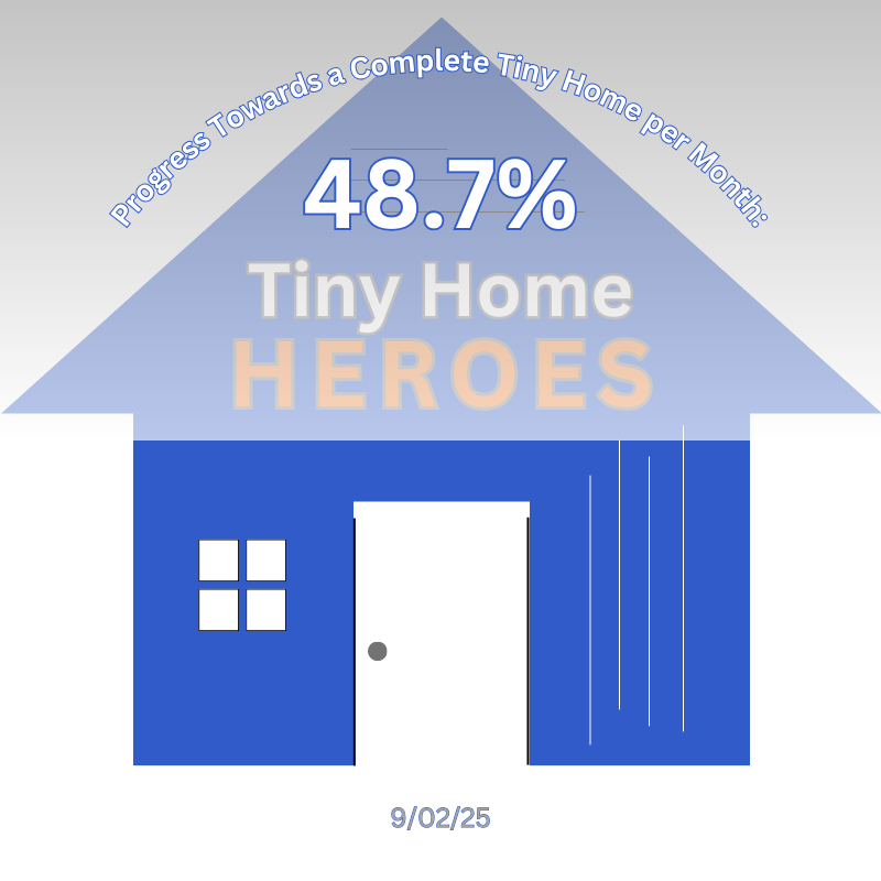 Our current goal is to fund one home per month through our Tiny Home Heroes program and as of September, 2025 we’re at nearly half of that goal! Can you help? $10, $25, $50, or more each month — all of it matters to help move our homeless neighbors off the streets and into spaces that are warm, safe, and dry. If you’re able, just $187.50 each month for 24 months sponsors a complete tiny home!
